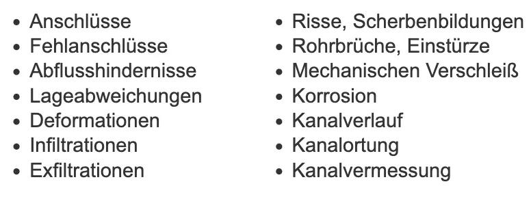 Mit modernsten Kamera- und Fahrzeugsystemen untersucht qualifiziertes, in einschlägigen Kursen aktuell geschultes Fachpersonal Kanäle jeder Dimension - von Hausanschlüssen und Grundleitungen über die kommunalen Kanalisationsnetze bis hin zu industriellen Abwassersystemen.